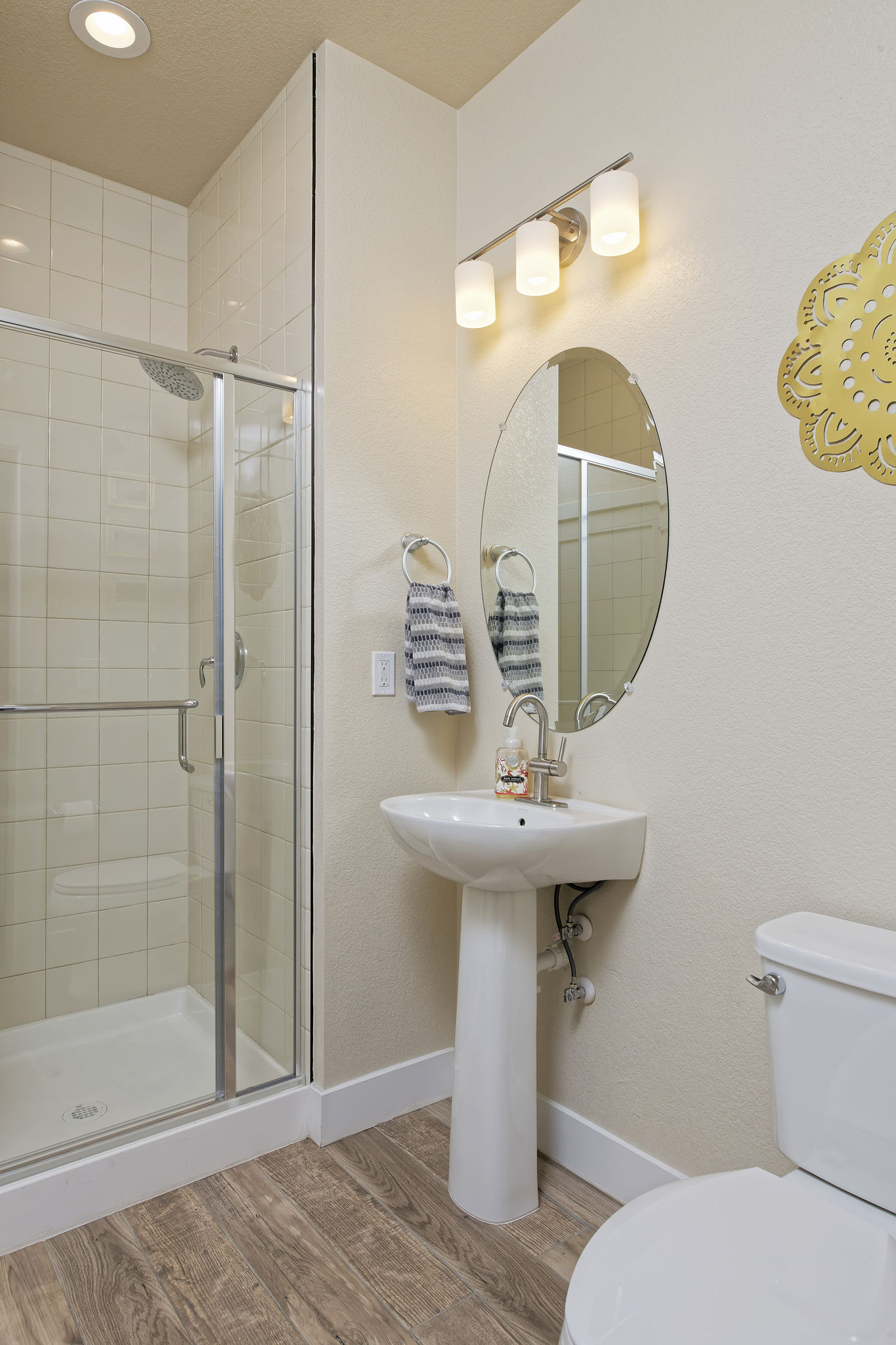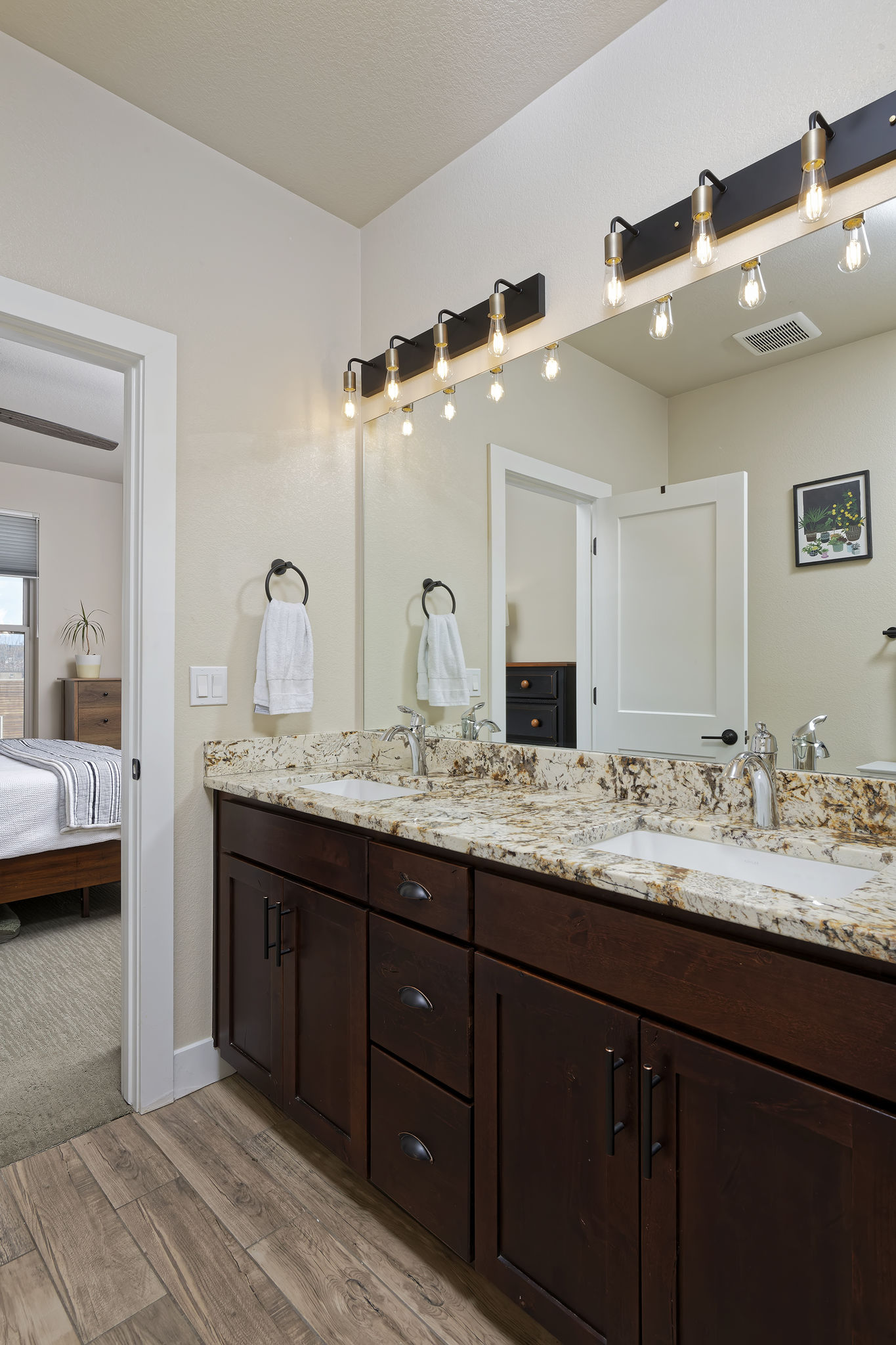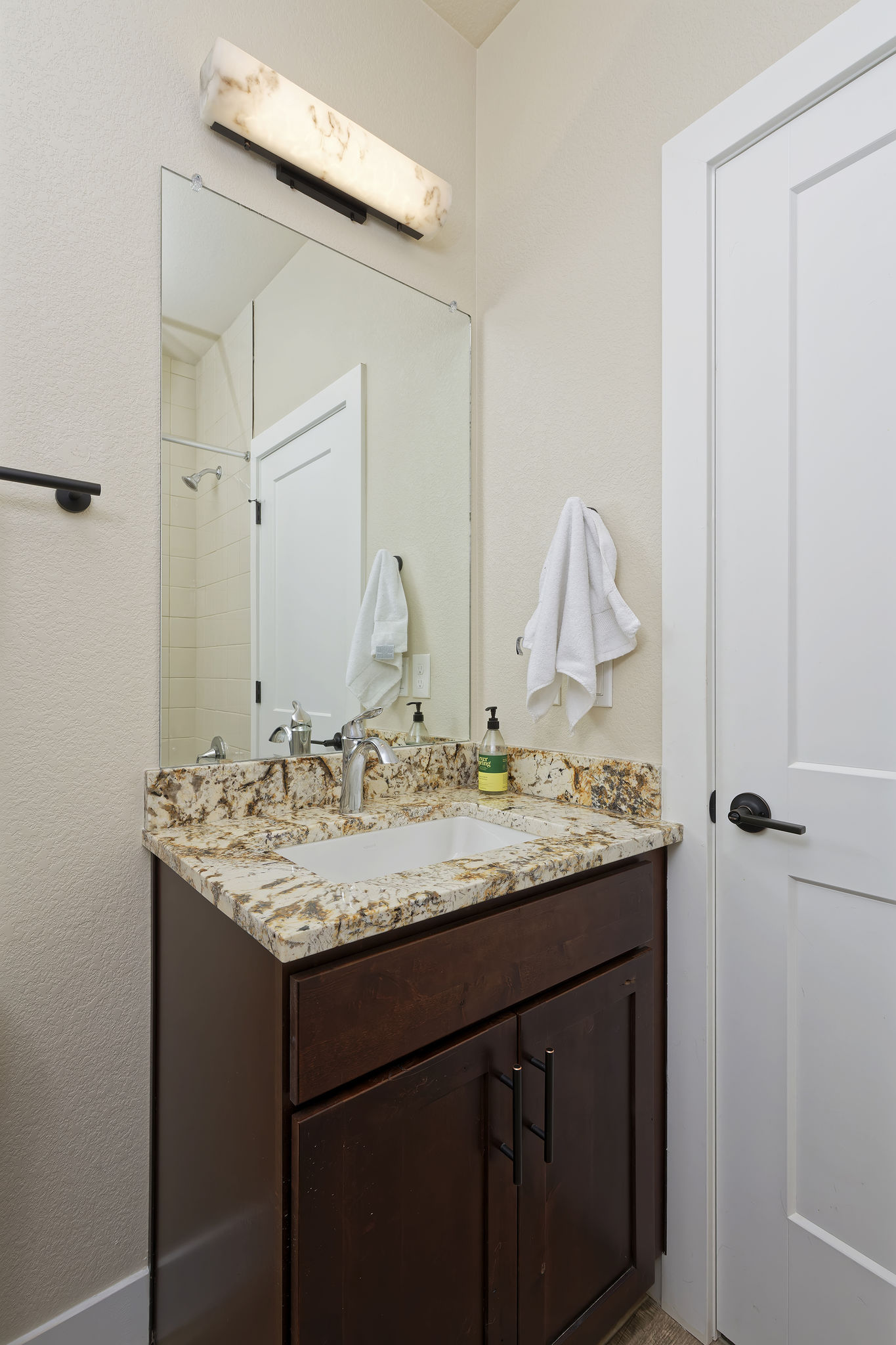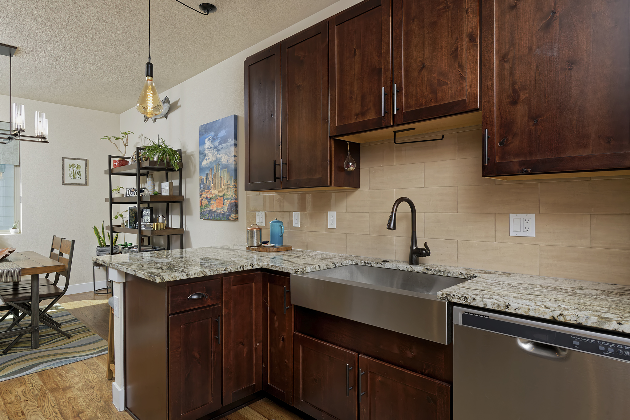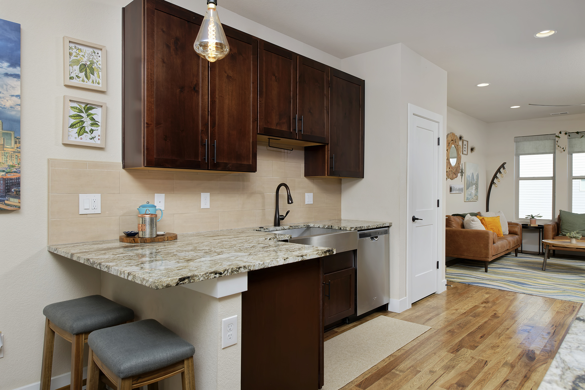 The lyrics to “Up on the Roof” are going to be playing in your head on repeat once you discover this home’s sunny and spectacular rooftop patio with views of the mountains during the day and city lights in the evening. Hook up your grill to the rooftop gas line and you’ll be the host to envy, with scenic summer cookouts all season long. Inside this contemporary, impeccably finished home are four levels of gorgeous spaces. The main floor has a convenient attached garage, a bedroom that can also be used as a study or office, and a great bathroom—all with tile floors throughout. On the second level is a stylish kitchen with granite counters, richly grained dark-wood cabinetry, and stainless appliances. Incredible ¾-inch hardwood hickory flooring run through this entire level, which flows easily from the kitchen into the living room, where a custom stone feature wall surrounds a fireplace and wood mantle. Upstairs is your peaceful primary suite and another bedroom with an en suite bath—the perfect place for rest, and just seconds from your refreshing panoramic rooftop. Just over a mile from the performing arts center and LoDo and two blocks from the 10th and Osage light rail station, Denver is your oyster from this beautiful townhouse.
