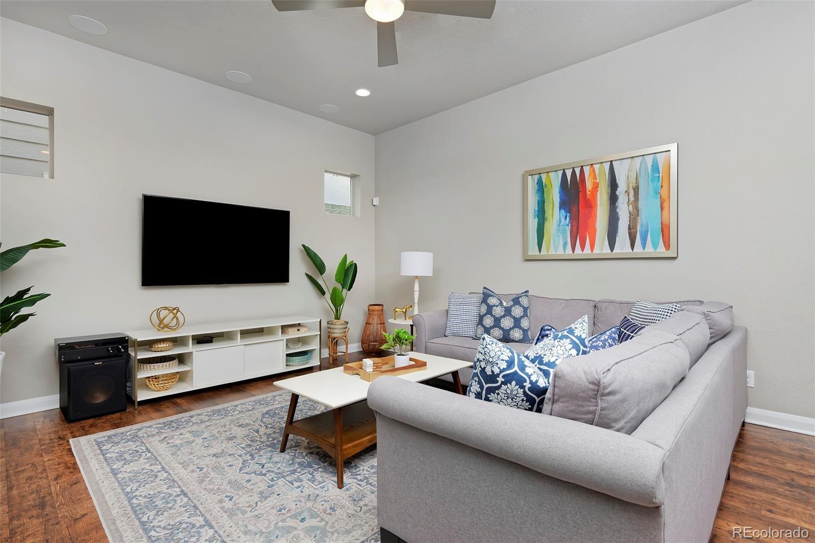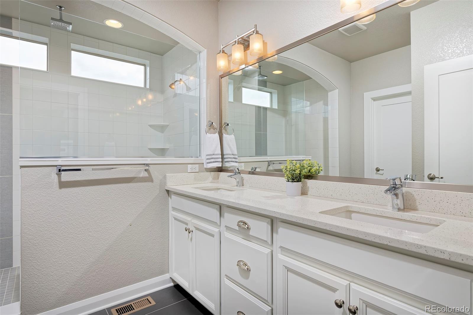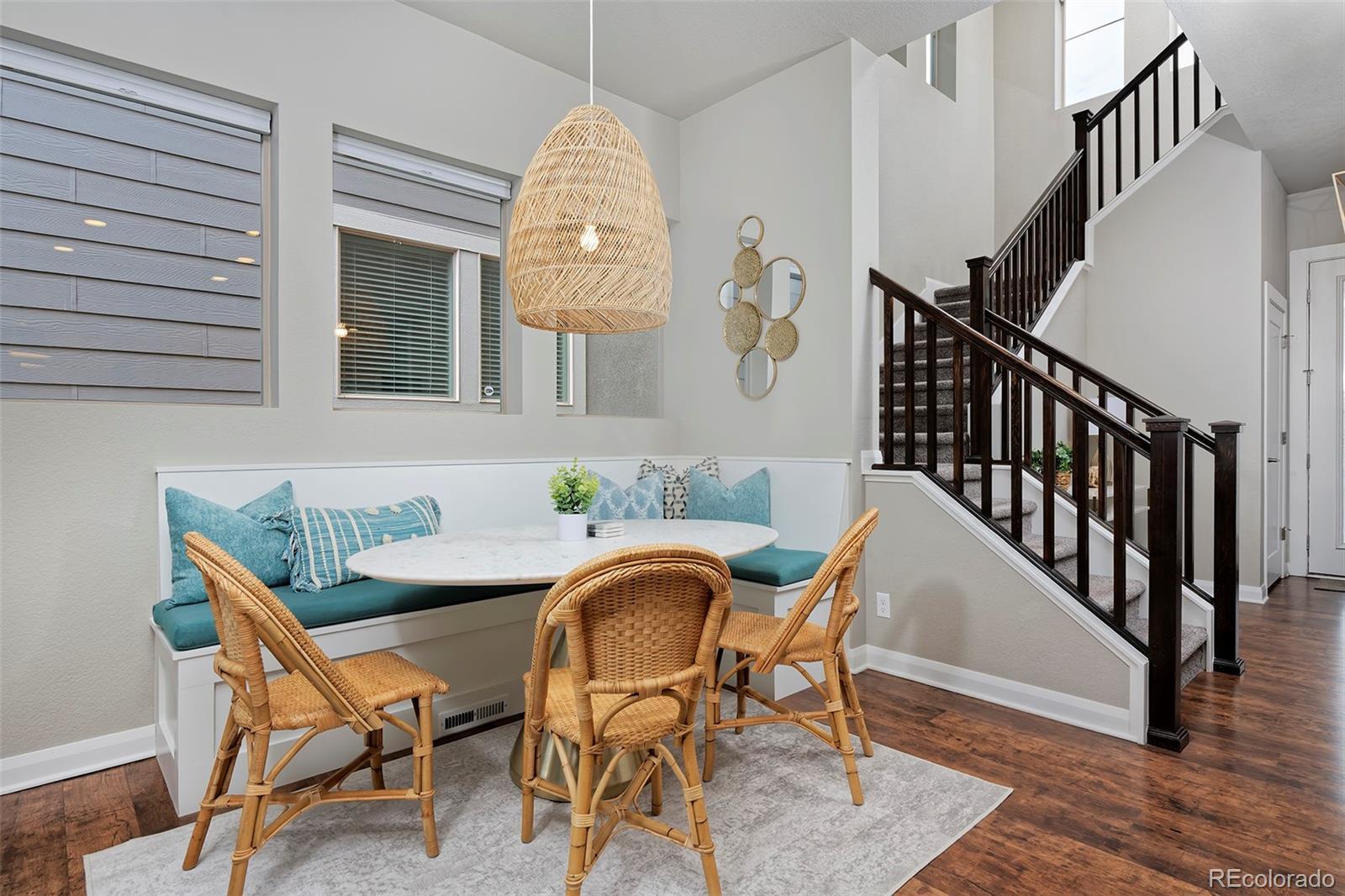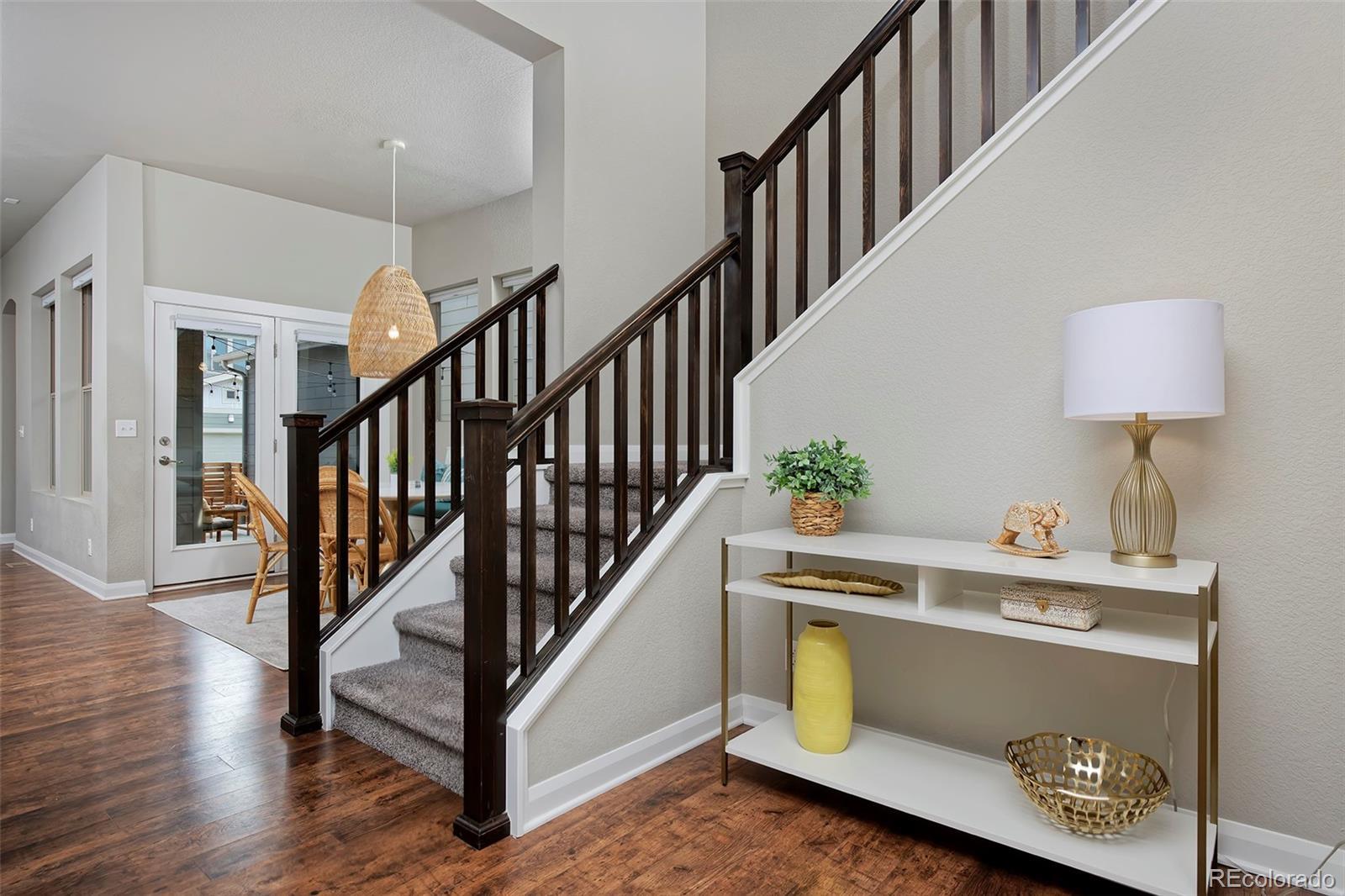 Breathe easier the second you enter this spotless and airy Midtown home, a couple of blocks from the Clear Creek Bike Path and a beloved park with splash pad and playground all just 10 minutes to downtown. This home's on-point finishes set a stylish tone with gorgeous laminate hardwoods throughout the main level, quartz counters in the kitchen and baths, designer light fixtures, neutral tile work, and high-quality cabinetry. Spread out in the open-layout main level, in 3 spacious bedrooms upstairs, and in the finished basement with a media/play area and a bonus room that can easily be converted to a 4th bedroom. A built-in speaker system lets you pipe tunes to the family room and basement. Entertain with ease from the elegant kitchen beside a charming, breakfast nook-style dining area and a side yard that's a picturesque patio for toasting beneath the stars. At day's end, retire to your peaceful primary suite, with a luxe bath and walk-in super shower featuring a second rain shower head.