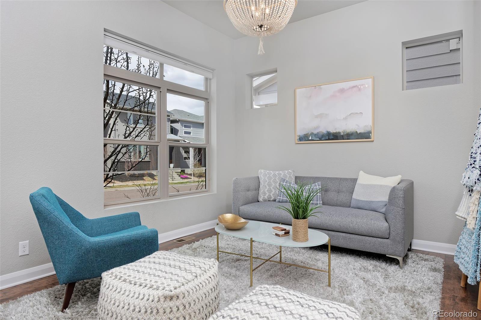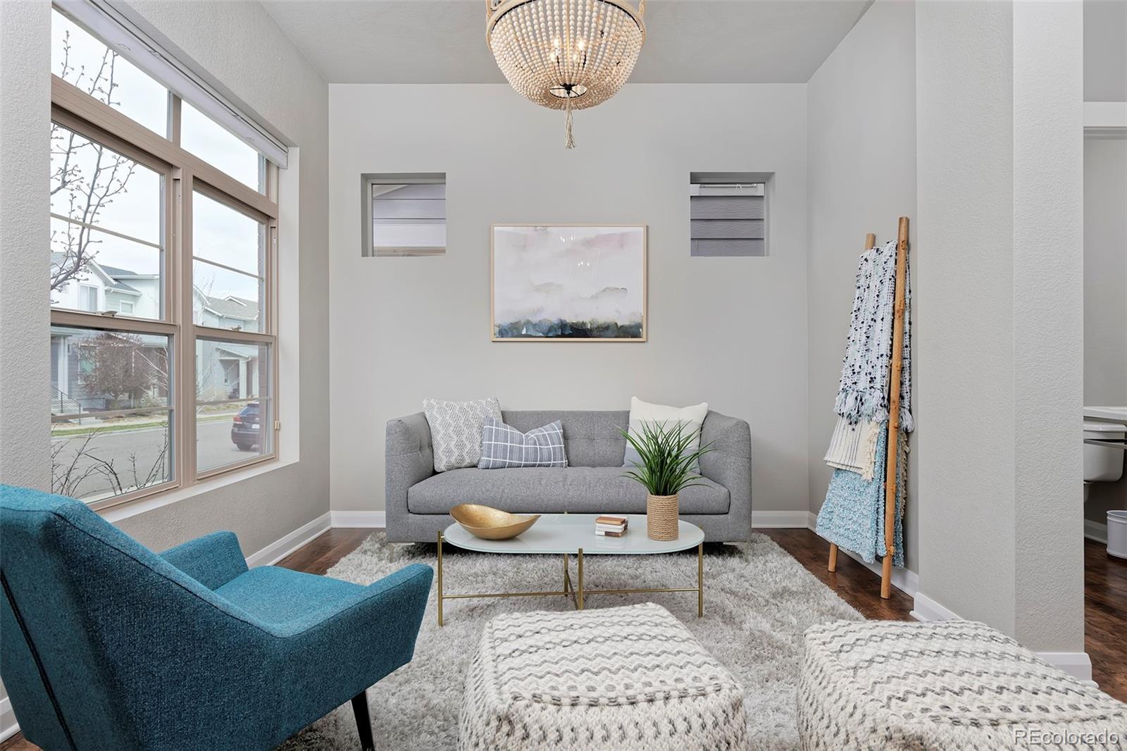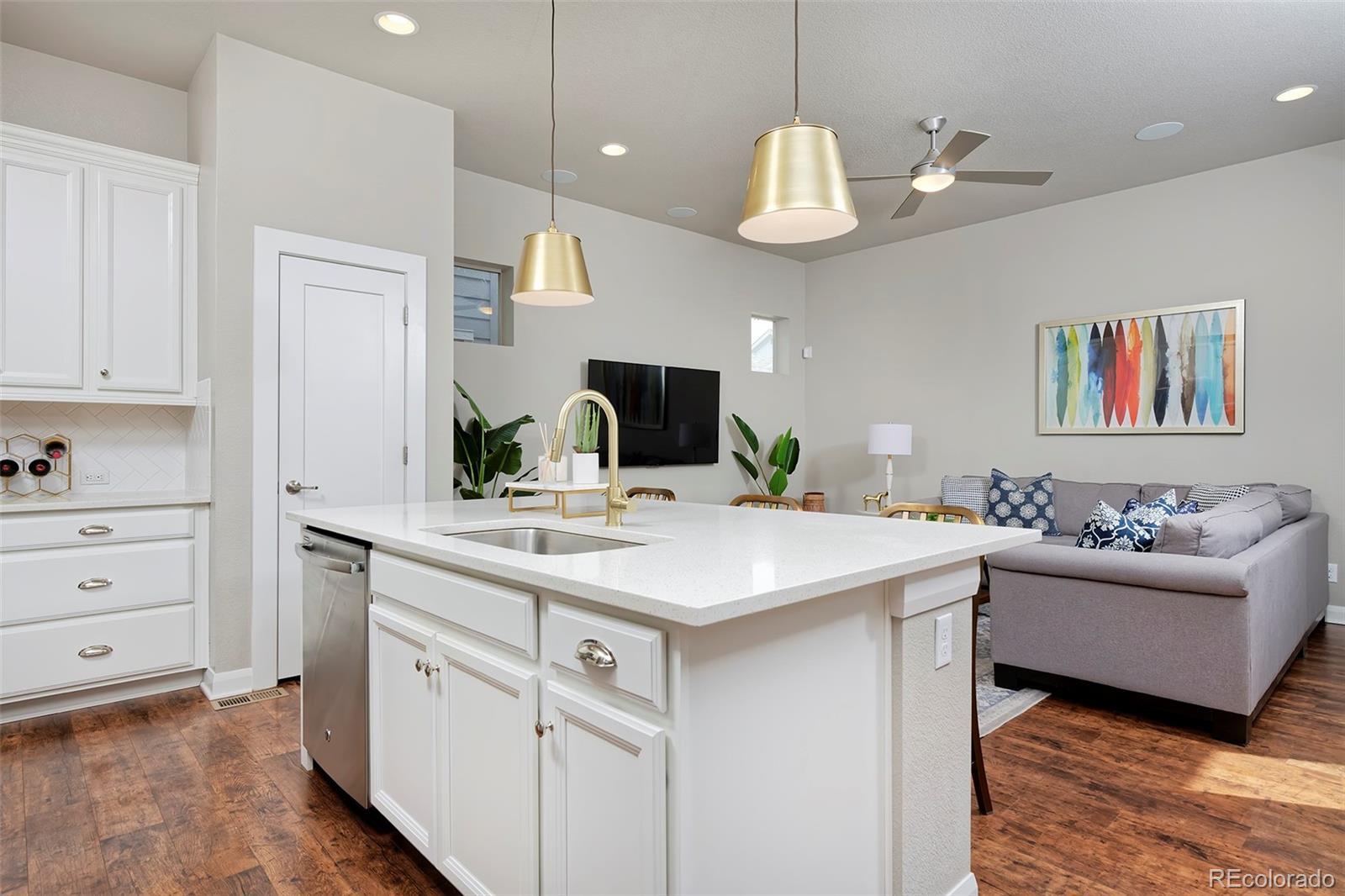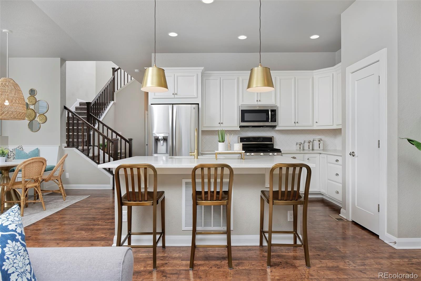 Breathe easier the second you enter this spotless and airy Midtown home, a couple of blocks from the Clear Creek Bike Path and a beloved park with splash pad and playground all just 10 minutes to downtown. This home's on-point finishes set a stylish tone with gorgeous laminate hardwoods throughout the main level, quartz counters in the kitchen and baths, designer light fixtures, neutral tile work, and high-quality cabinetry. Spread out in the open-layout main level, in 3 spacious bedrooms upstairs, and in the finished basement with a media/play area and a bonus room that can easily be converted to a 4th bedroom. A built-in speaker system lets you pipe tunes to the family room and basement. Entertain with ease from the elegant kitchen beside a charming, breakfast nook-style dining area and a side yard that's a picturesque patio for toasting beneath the stars. At day's end, retire to your peaceful primary suite, with a luxe bath and walk-in super shower featuring a second rain shower head.
