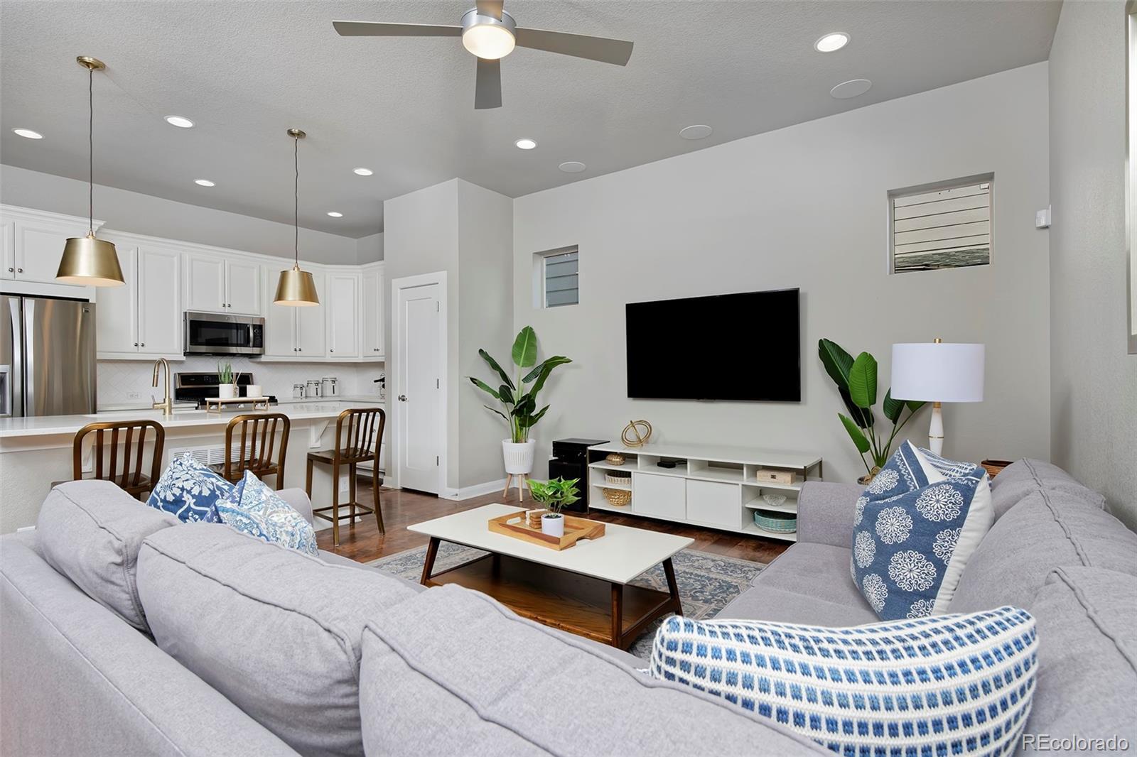 - OTHER INTERIOR FEATURESBreakfast Area, Ceiling Fan(s), Eat-in Kitchen, High Ceilings, High Speed Internet, Kitchen Island, Open Floorplan, Pantry, Quartz Counters, Sound System, Smoke Free, Walk-In Closet(s)