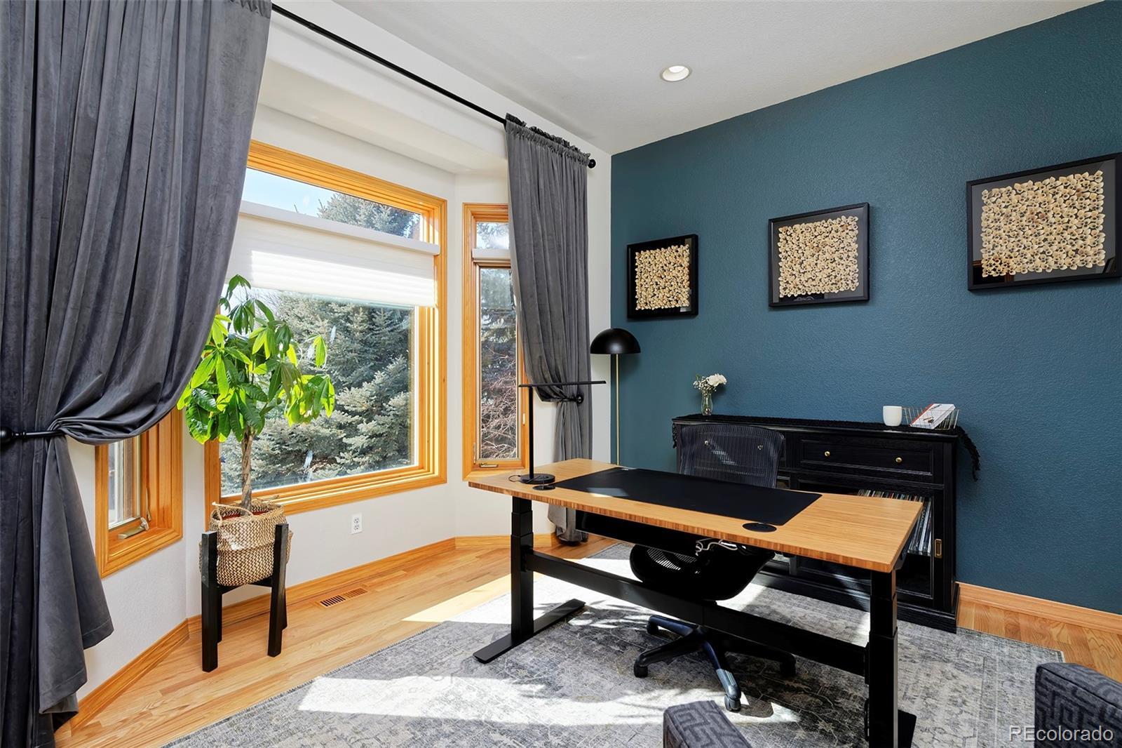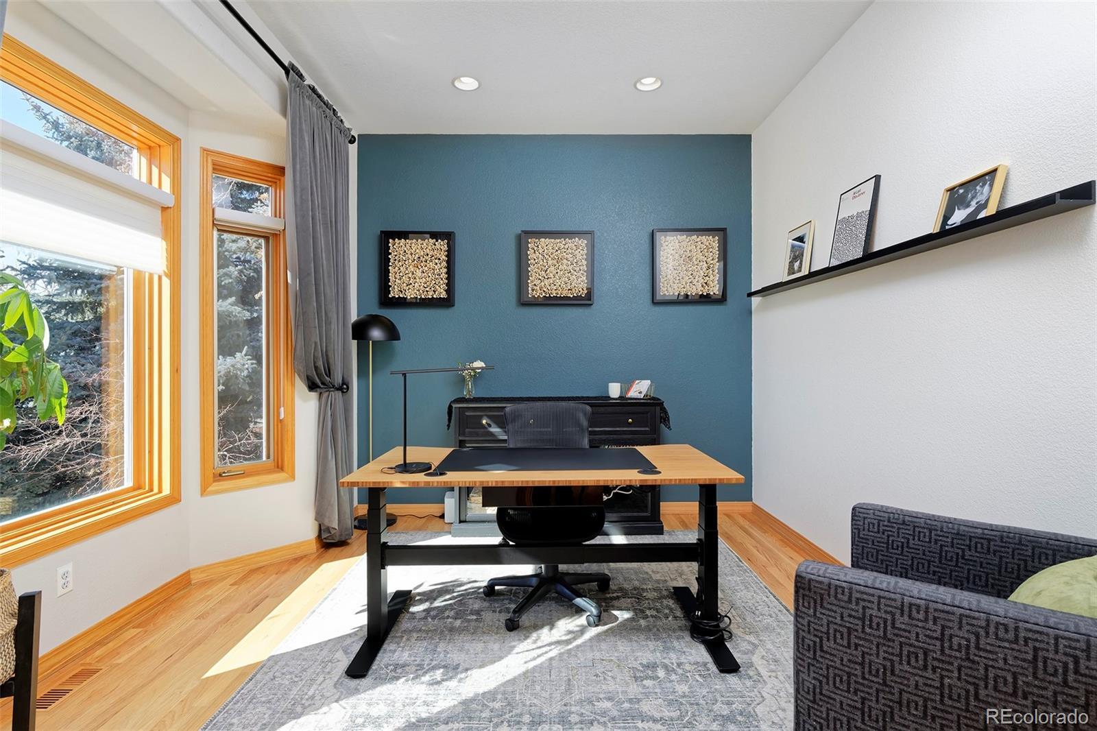 Luxury, country-club living at an incredible value never looked so good. This graceful three-story has emerald views of Fort Collins Country Club's 18th-hole fairway and is across the street from Long Pond Reservoir, which captures spectacular sunset reflections. Enjoy the quiet life, with gorgeous trees and birdsong in a private… Read Moreenclave, while just 10 minutes from super popular Old Town Ft Collins. The home itself cuts a striking figure from the curb thanks to an investment in next-level landscaping that goes all the way up to the front door, which in turn is framed by shapely bay windows and mature trees. Inside are thoughtful architectural sightlines and spacious living areas featuring finely crafted wood built-ins, hardwood floors, a gas fireplace and living-room wet bar for entertaining. Take your gatherings into the large dining room, out in the fresh air on the sunken patio, or at the spacious center island in the gourmet kitchen, outfitted with a Subzero refrigerator. Cushy, melt-your-cares-away privacy awaits in your primary suite, with a sprawling bathroom and sitting room with its own fireplace. A built-in elevator adds ease and accessibility from the garage to the main level to the upper floors.Read Less