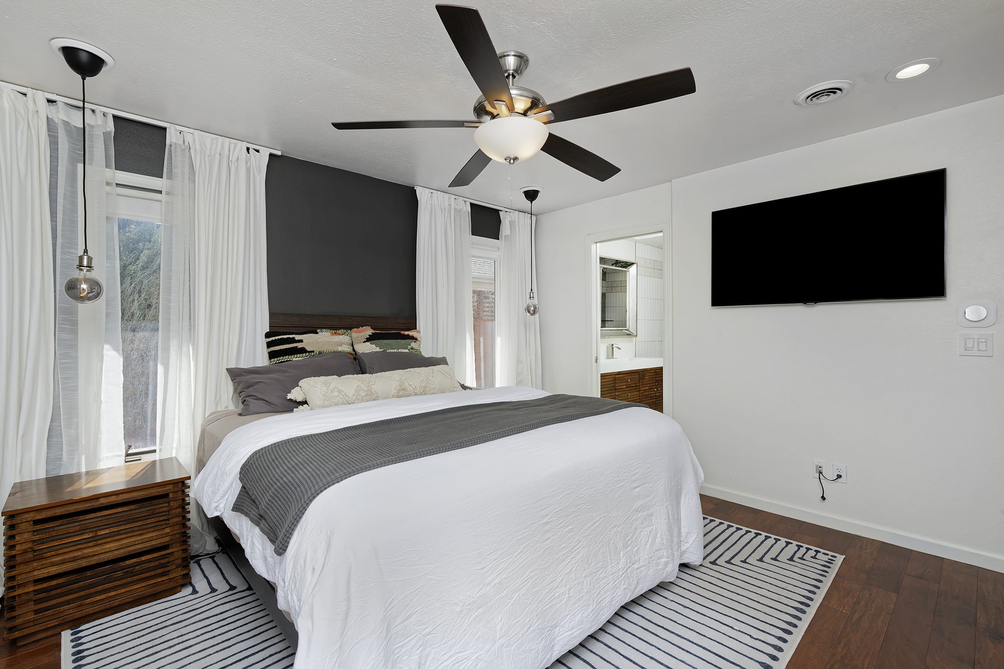 Lucky you! This home is so beloved by its current owners that it’s been updated beyond anyone’s expectations—a testament to how cherished the lakefront life is here at the edge of Sloan’s Lake in a historic district with mountain views and lush parkland just across the street. Plan for unforgettable… Read Moresunset-watching sessions from your partially covered front patio and built-in outdoor bar. The setting inspired extensive upgrades to this ranch-style home whose layout feels larger than its square footage. The kitchen’s luxury transformation includes quartzite countertops, handcrafted Moroccan tile that runs all the way up to the vaulted ceiling, and Thermador appliances, including an amazing three-column refrigerator with a wine fridge. Heated hardwood floors run throughout the kitchen, dining room and living room, which boasts a gas fireplace with a tall stone surround. Your primary bedroom has a stunning en suite bath with a freestanding tub, designer chandelier, floor-to-ceiling tilework and modern, slatted cabinetry. The second bedroom and office have gorgeous built-in storage, and the office doubles as a guest room with the inclusion of a high-end murphy bed. While the backyard privacy fence and hot tub may tempt you to never leave home, an outdoor lover’s dream awaits all around the lake, with tennis and basketball courts, boating, trails, SUP and fishing. Everyone’s going to want to come over, so your ample parking (2-car garage plus three extra parking spots) will come in handy. So will a central location that’s less than three miles from the heart of downtown Denver and even closer to some of the city’s best eateries, parks and shopping in the Sloan’s Lake, Highlands and Edgewater neighborhoods.Read Less