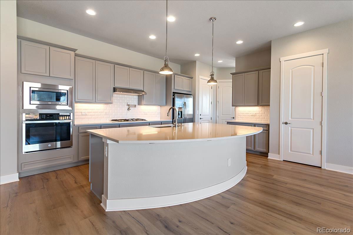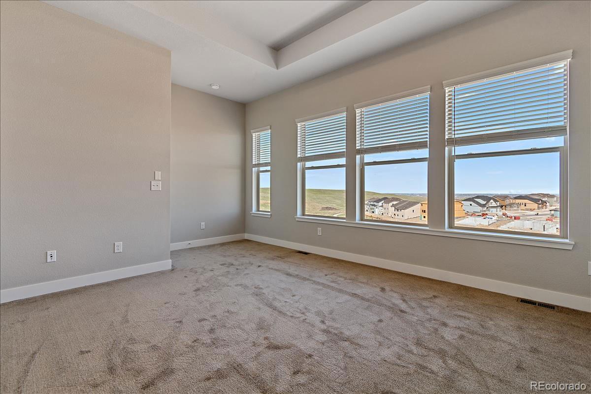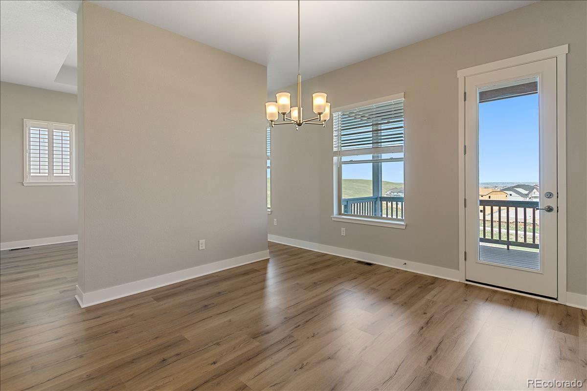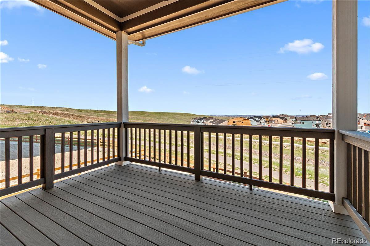 Gorgeous 5,000 square foot ranch home backing to open canyon space with incredible mountain views in the all new Macanta community! 4 beds, 3.5 baths, study with a finished walkout basement. Enjoy a cup of coffee and soak in your mountain and canyon views from your upper back deck or enjoy gatherings with family and friends in your private fenced back yard. Gorgeous features and superb craftmanship come together to make the Alcott an impressive new home! Open sight lines, well designed traffic patterns, oversized picture windows and 10' ceilings are features that make this home feel spacious and open. 12' Sliders in the living room accentuate the incredible mountain and canyon views from the living room, kitchen and dining room. The private study also showcases impressive views. The kitchen offers a gourmet chef's kitchen showcasing shaker-style 42 cabinets, quartz counter tops, a designer back-splash, stainless GE appliances (gas), and an island designed for family gatherings and entertaining friends! The master suite features a his and her closet and a 5-piece bath! Two additional bedrooms share a Jack-n-Jill bathroom with a walk-in shower. A spacious laundry room and separate powder bath complete this home! The finished walkout basement offers 9' walls, gameroom, bedroom and full bath to add a whole other level of living space. Additional energy efficient features including a tank less water heater, central AC, an active radon mitigation system, and an extensive home warranty. Macanta offers plenty of open space and canyon views, mountain biking trails, a state-of-the-art recreation center with pool and so much more! Close in December!