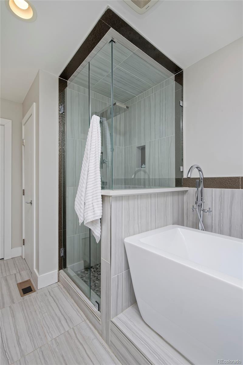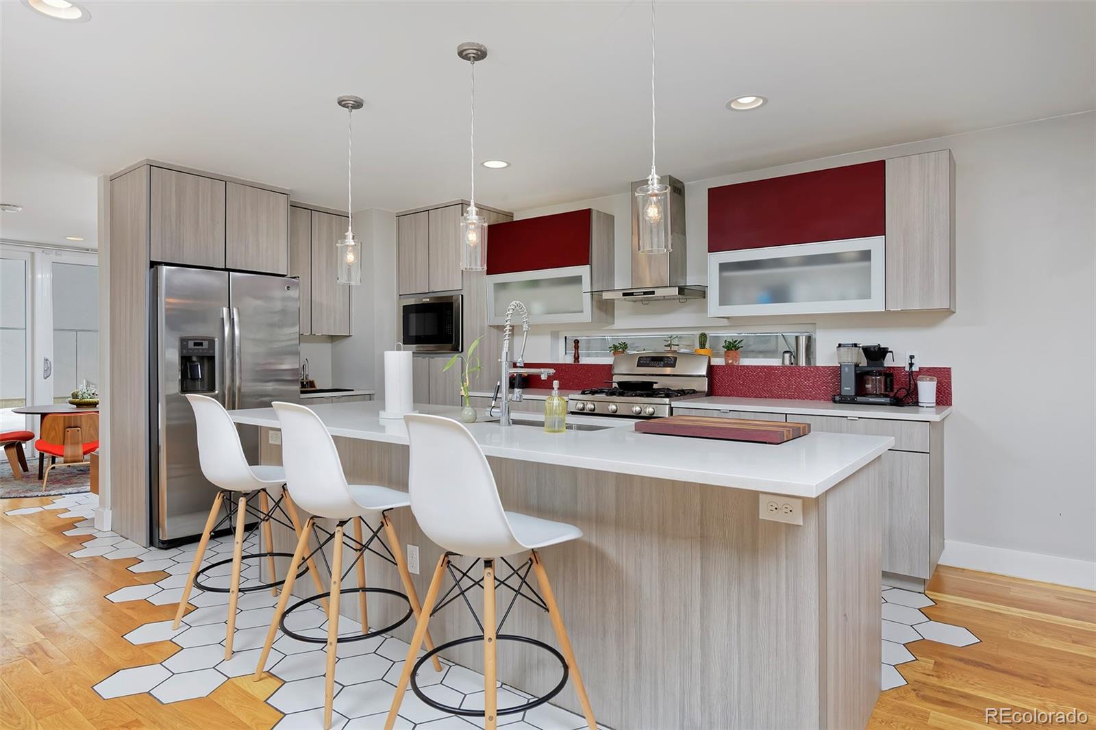 Bright, clever, creative, uplifting this home might just be the antidote to the last few months. Hit reboot in this super-chic, luxury LoHi property that sports impeccable contemporary style, sparkling city views, and a location that's just minutes from downtown. At the end of the day, raise a glass and take in some fresh air on the front patio, the striking second-floor balcony, or the private rooftop deck with sunset panoramas. Look forward to future gatherings around your luxe kitchen, featuring a large in-sink island; sleek granite counters; modern, soft-close cabinetry; and unique honeycomb tile flooring that offsets the wood floors on the main level. Upstairs is the perfect downtime hideaway, with a primary suite that includes a walk-in closet, soaking tub, and a shower with body jets and rain feature. Out back are a detached, large 2-car garage and a perfectly sized lawn. This is low-maintenance, high-design city living at its best. Smart home - all common area lights can be controlled by smart home hub, nest thermostat, nest cams installed front and back, ring doorbell.