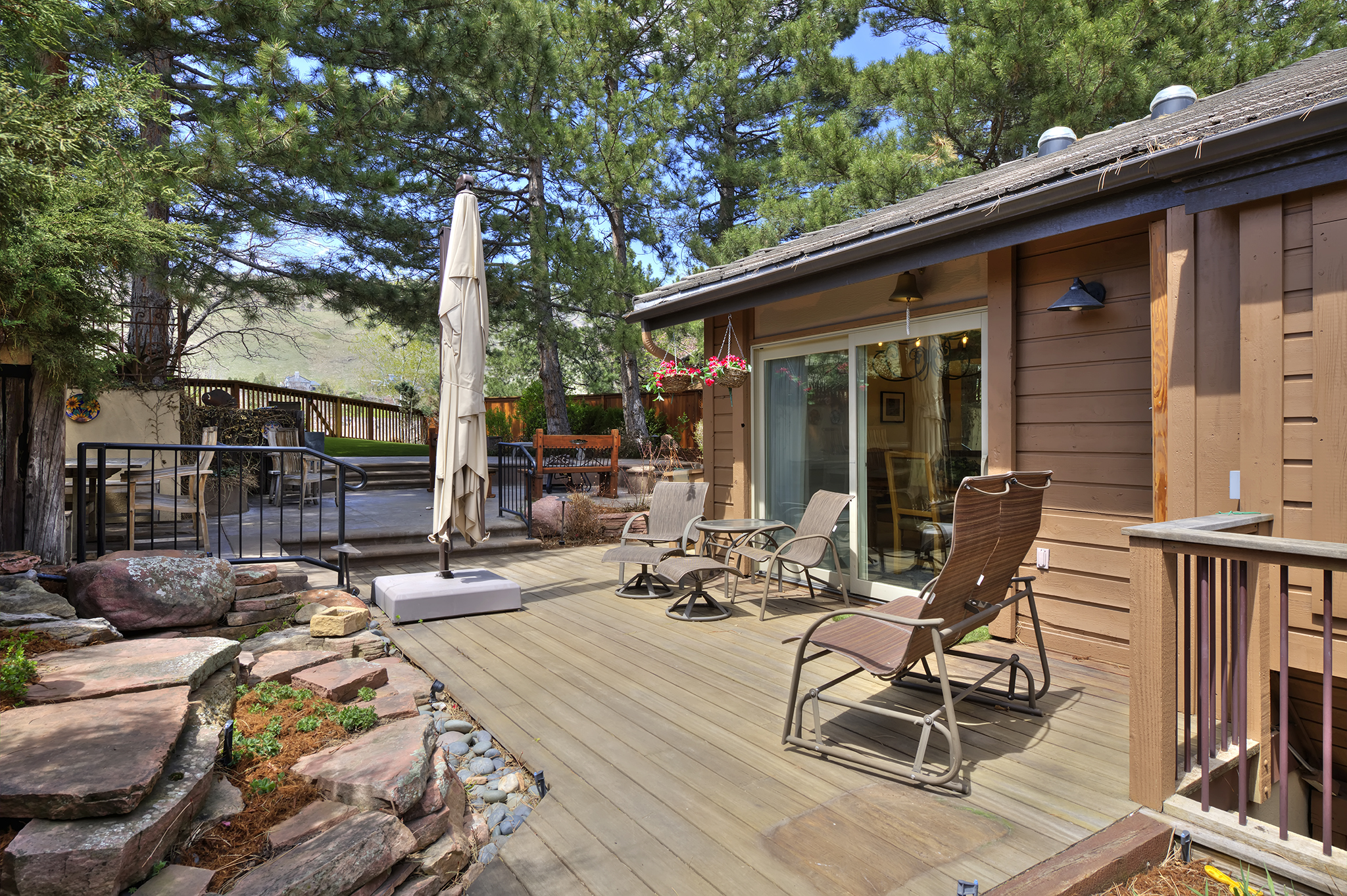 Who can wait for crisp summer nights around the backyard gas fire pit - when it’s cool enough to pull your puffy on, toast the day, and unwind? Embrace indoor-outdoor living in true Wonderland Lake style from this contemporary townhome that backs up to open space with sunny views of Boulder’s beloved foothills. Whether you’re a true entertainer or want an oasis of your own, the terraced backyard with a rock garden, fountain, pergola, privacy fence and sun-kissed south-facing deck is sure to inspire. This location is ideal for nature lovers who still want quick access to neighborhood amenities like the local market, bakery, coffee shops, and restaurants—with Pearl Street just a few minutes away, too. The beauty continues inside in an open kitchen with ample counter space and cherry cabinets, an office with built-ins, a refinished basement, and careful attention to details, like artisan-forged metal railings and exposed alderwood beams. EV car charging, accessibility adaptations, and fire-resistant roof tiles add value, too. Come tour this special spot nestled in a tree-filled back corner, right on a path connecting to a network of favorite Boulder trails.