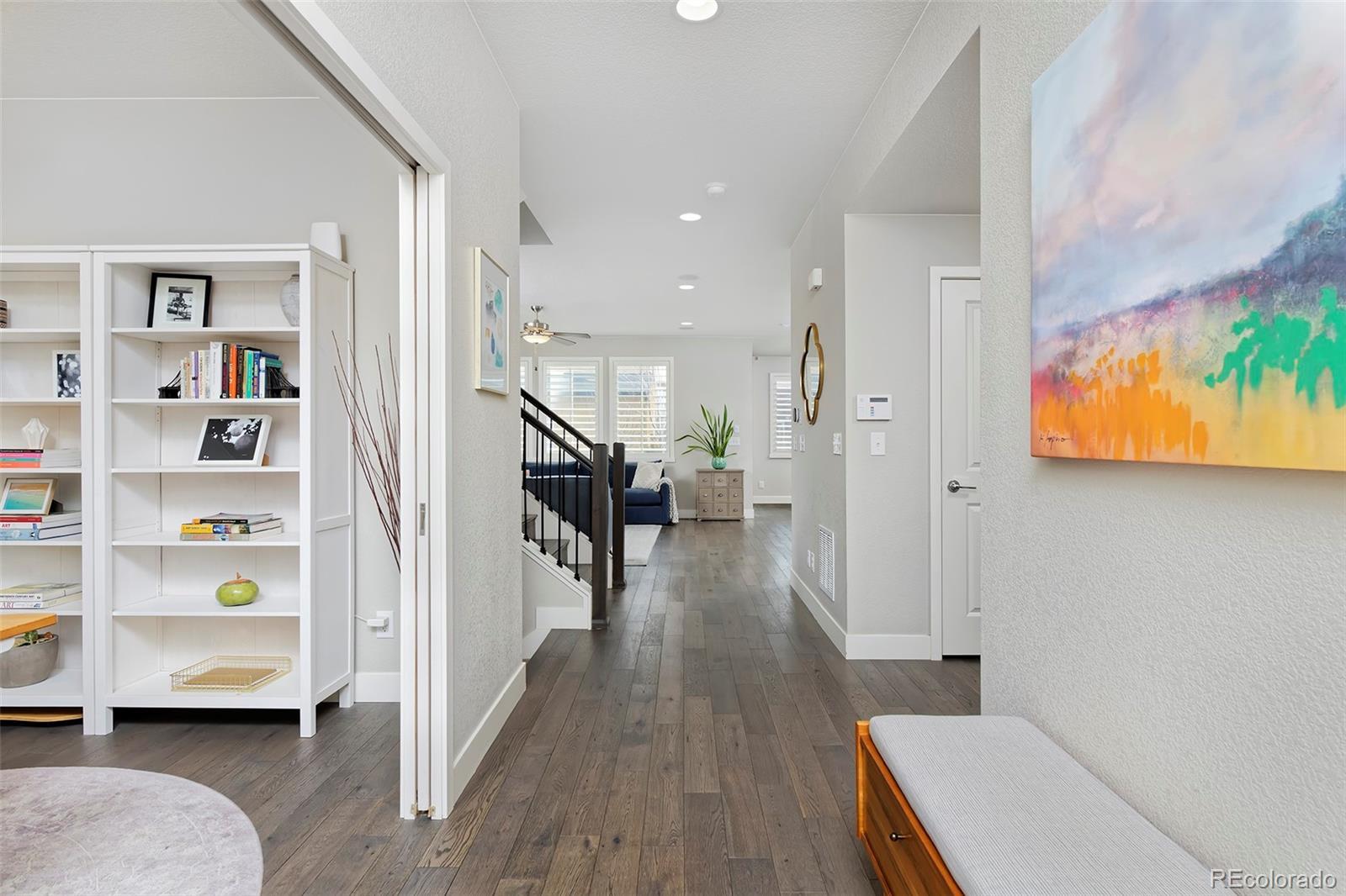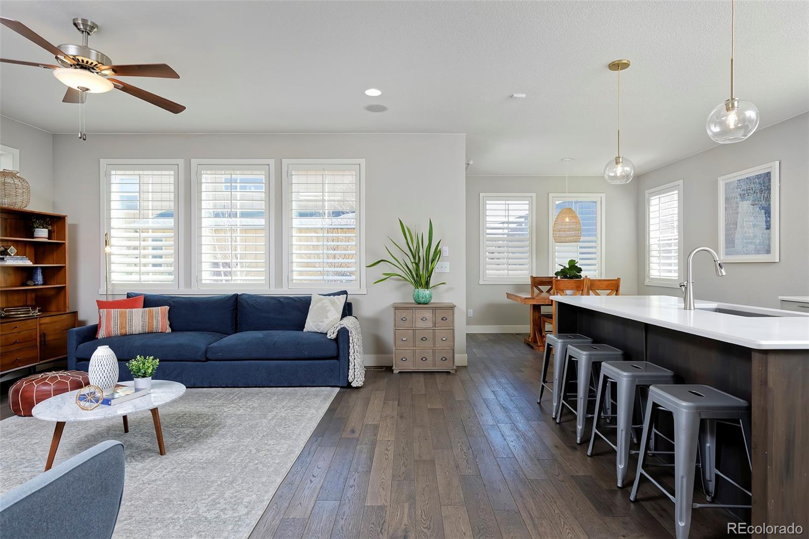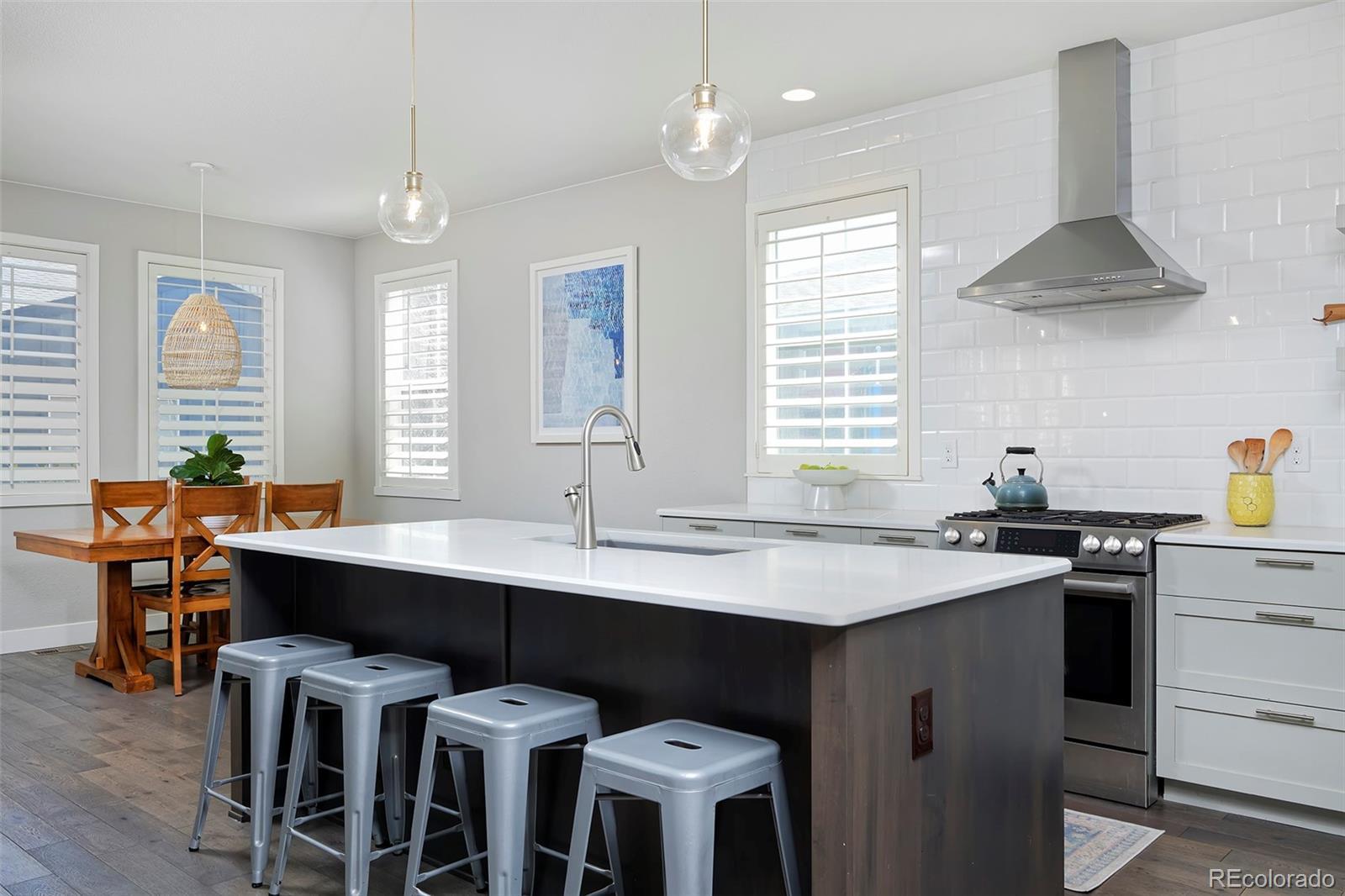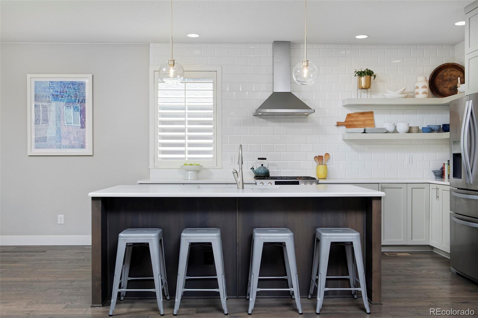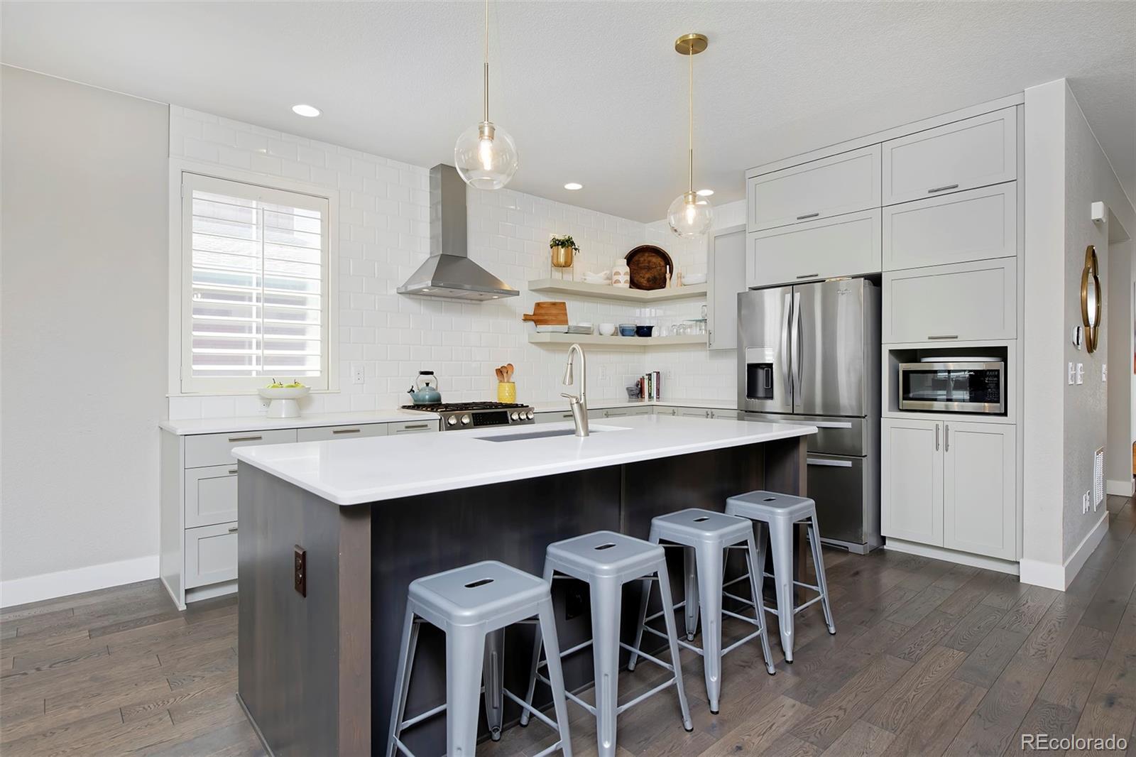 Discover one of the most spacious, well-designed homes we've seen yet in the darling of Denver neighborhoods: Midtown! And it's got one of the area's best backyards (with lawn space) to boot. This is a home you'll be giddy to show off, from the stunning kitchen's ceiling-height backsplash tile, quartz counters and in-sink island, to the plantation shutters throughout, to the sunny dining area and living room, with its chic, conversation-starting gas fireplace. The main level is laid with wide-plank hardwoods and includes a study, half bath and mudroom with built-ins. The party really gets started downstairs, where a wet bar features luxe tilework, designer lighting, a kegerator and a beverage fridge, with a fourth bedroom, bath and storage rounding out the basement. Upstairs is a loft (great as an additional office space), two bedrooms with Jack-and-Jill bath, and your primary bedroom a peaceful ensuite with a huge shower and walk-in closet. The stylish home base you've been craving is only 15 min from downtown.